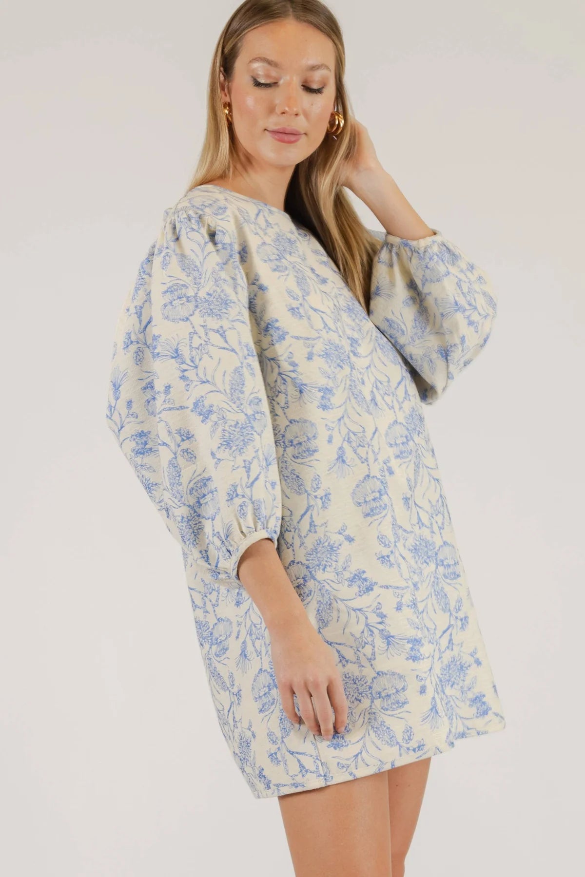 Style: Puff-sleeve mini dress with a straight silhouette